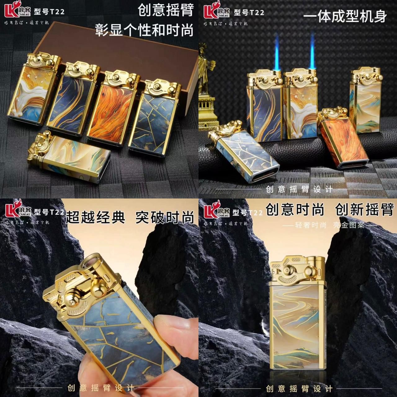 Зажигалка железная автоген Т22 золотая