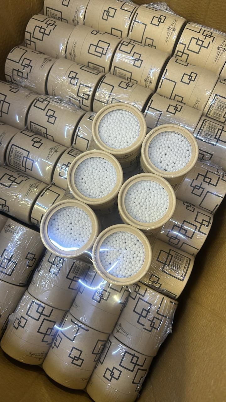Количество товара Ушные ватные палочки.Состоят из 100% хлопка. В плотном картоном тубе.